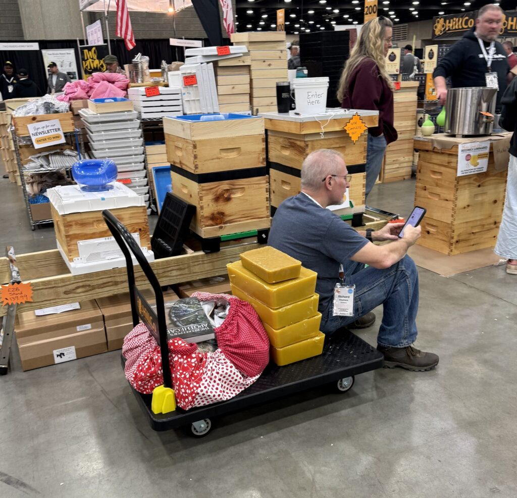 The old continues alongside the new at NAHBE: this is a hallmark of today’s beekeeping, which of course uses gear much like what was used 150 years ago. Big vendors broker a ton of hive bodies, frames, treatments and other standard equipment often at low prices (you also avoid shipping costs if you buy there).